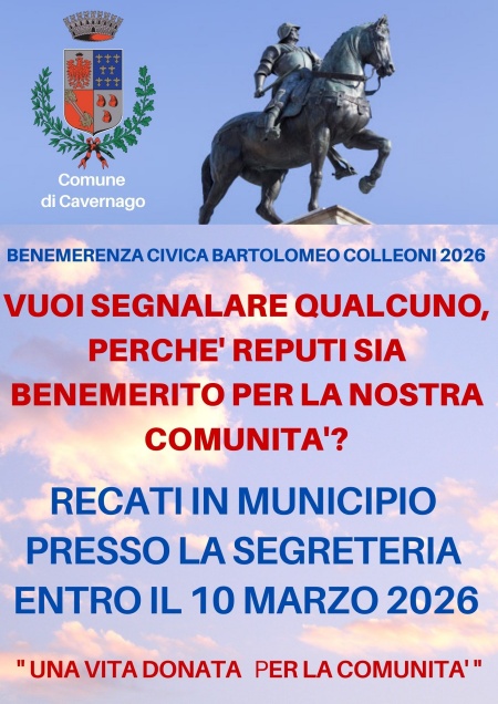 Candidature per BENEMERENZA CIVICA BARTOLOMEO COLLEONI 2026