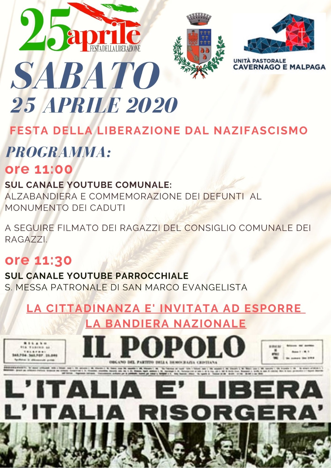 Quest'anno causa l'emergenza sanitaria in atto, sarà una celebrazione in formato ridotto con la sola presenza del Sindaco e dei consiglieri comunali. La celebrazione sarà visibile sul canale youtube comunale dalle ore 11:00 del 25 aprile.