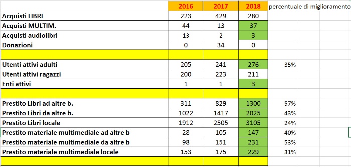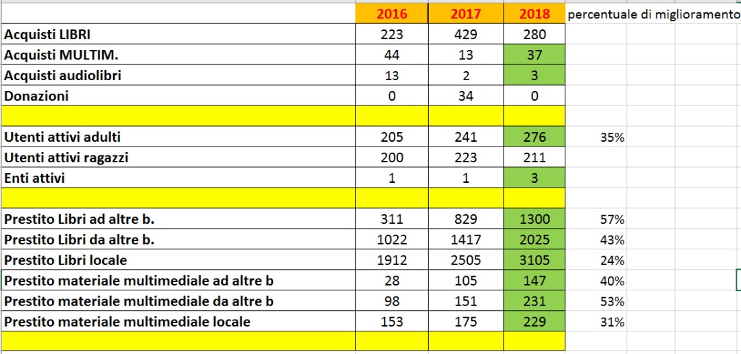 Si rendono note le statistiche legate al funzionamento della nostra biblioteca che è indice dello stato di salute. Numeri che fanno ben sperare visto l’andamento degli ultimi anni, il prestito è aumentato in modo considerevole. Se paragoniamo il dato 2018 con il 2016 il prestito locale è aumentato del 50%, quello da altre biblioteche raddoppiato e quello verso altre biblioteche quadruplicato.