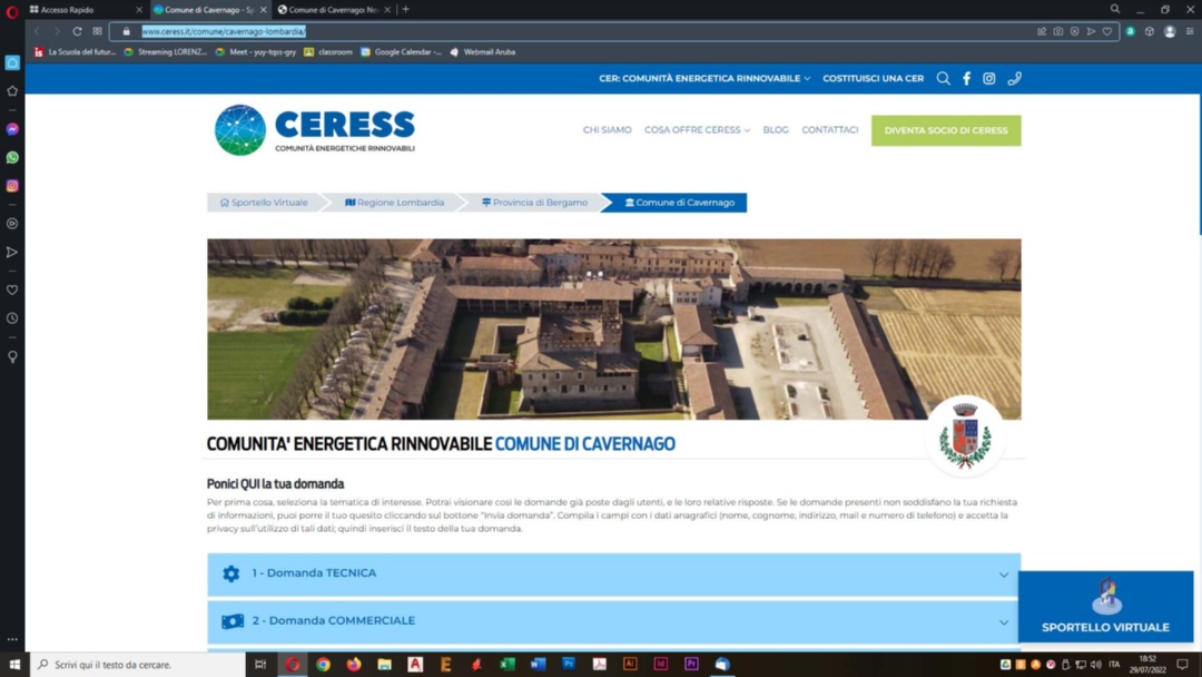 Si comunica che è attivo lo sportello ONLINE della Comunità energetica di Cavernago. Hai dubbi, domande? Niente paura, troverai tutto quello che serve e nel caso potrai chiedere agli esperti della Comunità.