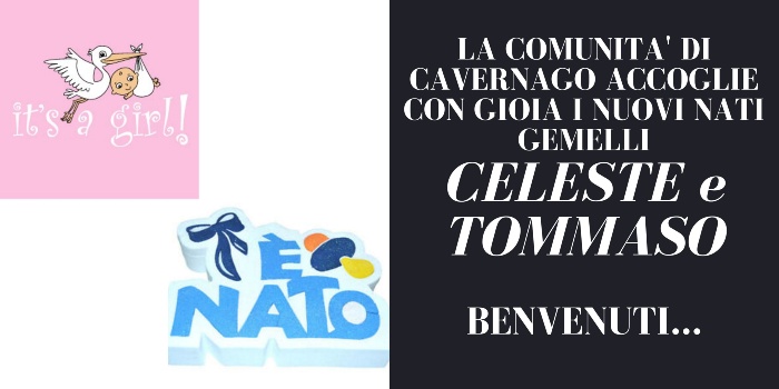 La comunità di Cavernago accoglie con gioia CELESTE e TOMMASO. Benvenuti tra noi.