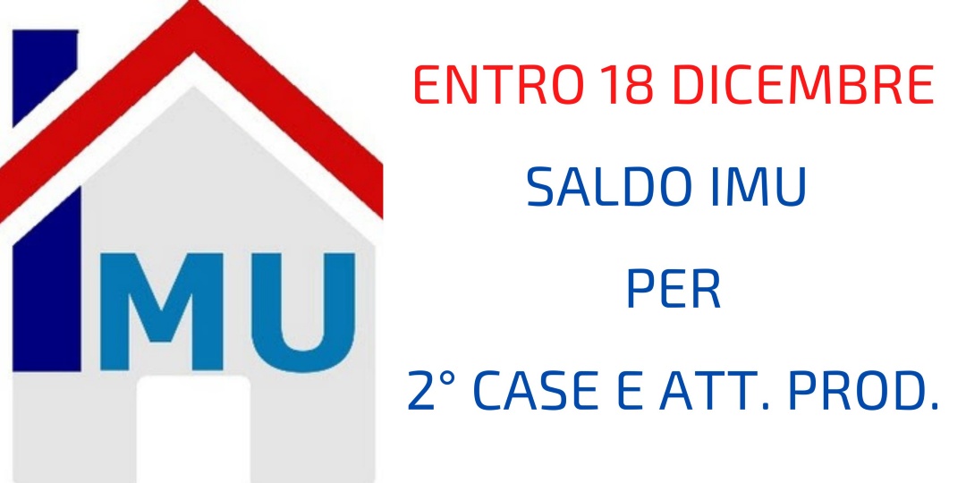 Si ricorda che il 16 dicembre 2018 è il termine ultimo per il pagamento della 2° rata dell'IMU. Si consiglia di contattare l'ufficio tributi il prima possibile, onde evitare il sovraffollamento.