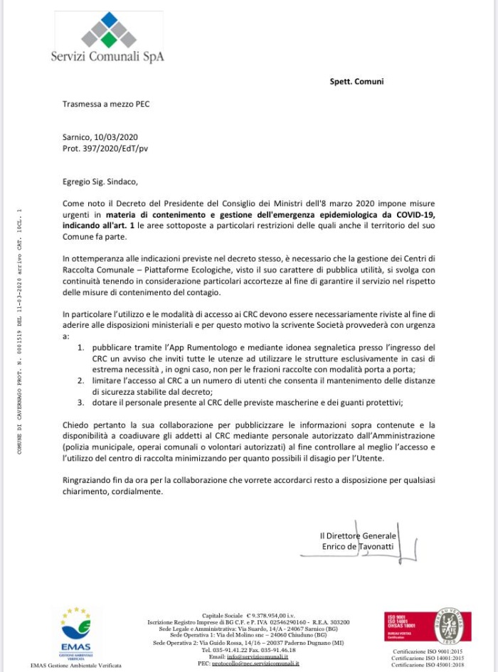 Alleghiamo comunicazione della società che gestisca la stazione ecolgogica di via G. Ungaretti. APERTURA SI, MA CON LIMITAZIONI.