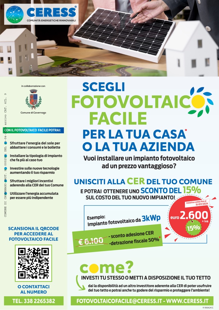 Una opprtunità per chi ha intenzione di aderire o ha già aderito alla CER di Cavernago.
