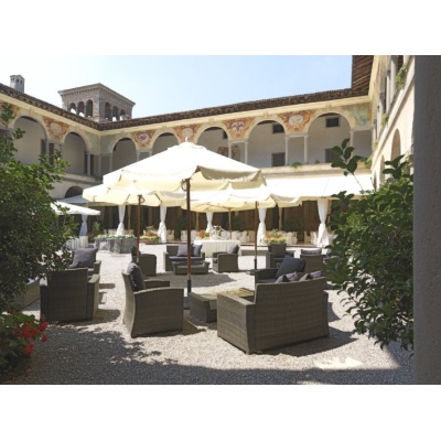 Successivamente la proprietà passa ai suoi discendenti, i Martinengo Colleoni. Nel 1594, a seguito di una divisione fra i due rami della famiglia, il complesso passa al condottiero conte Francesco, insignito nel 1576 del prestigioso collare dell’Ordine della Ss. Annunziata dal duca Emanuele Filiberto di Savoia. A partire dal 1597, con la moglie Beatrice di Langosco, marchesa di Pianezza, si iniziano i lavori di radicale ricostruzione del complesso che conferiscono l’attuale forma al fortilizio.