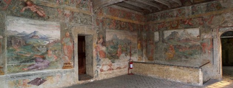 L’elegante cortile d’onore e il Salone dei Banchetti, col suo ciclo narrativo cinquecentesco che illustra la visita di Re Cristiano I di Danimarca, ospitano vere e proprie fotografie d’epoca, realizzate dai maestri del realismo lombardo: Marcello Fogolino e il Romanino.