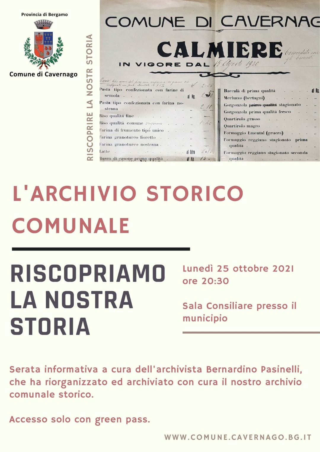 Serata informativa sul lavoro svolto dall'archivista Bernardino Pasinelli nella riorganizzazione dell'archivio storico comunale. Evento da non perdere.