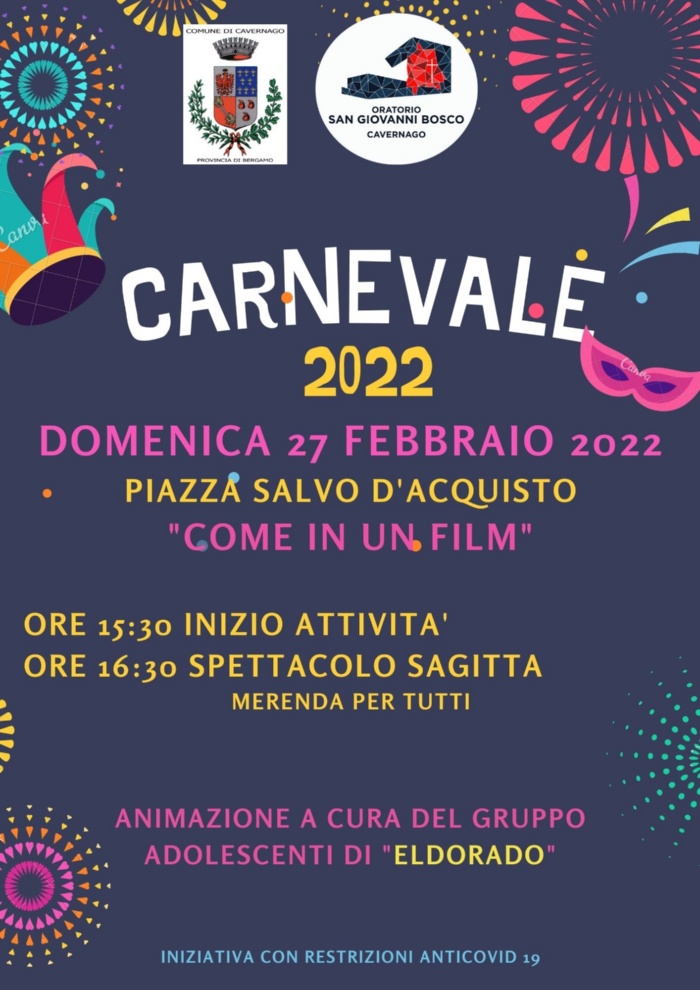 In collaborazione con l'oratorio S. Giovanni Bosco... Riprendiamoci la nostra Vita. Domenica 27 febbraio ritorna dopo 2 anni il CARNEVALE. SIETE TUTTI INVITATI!
