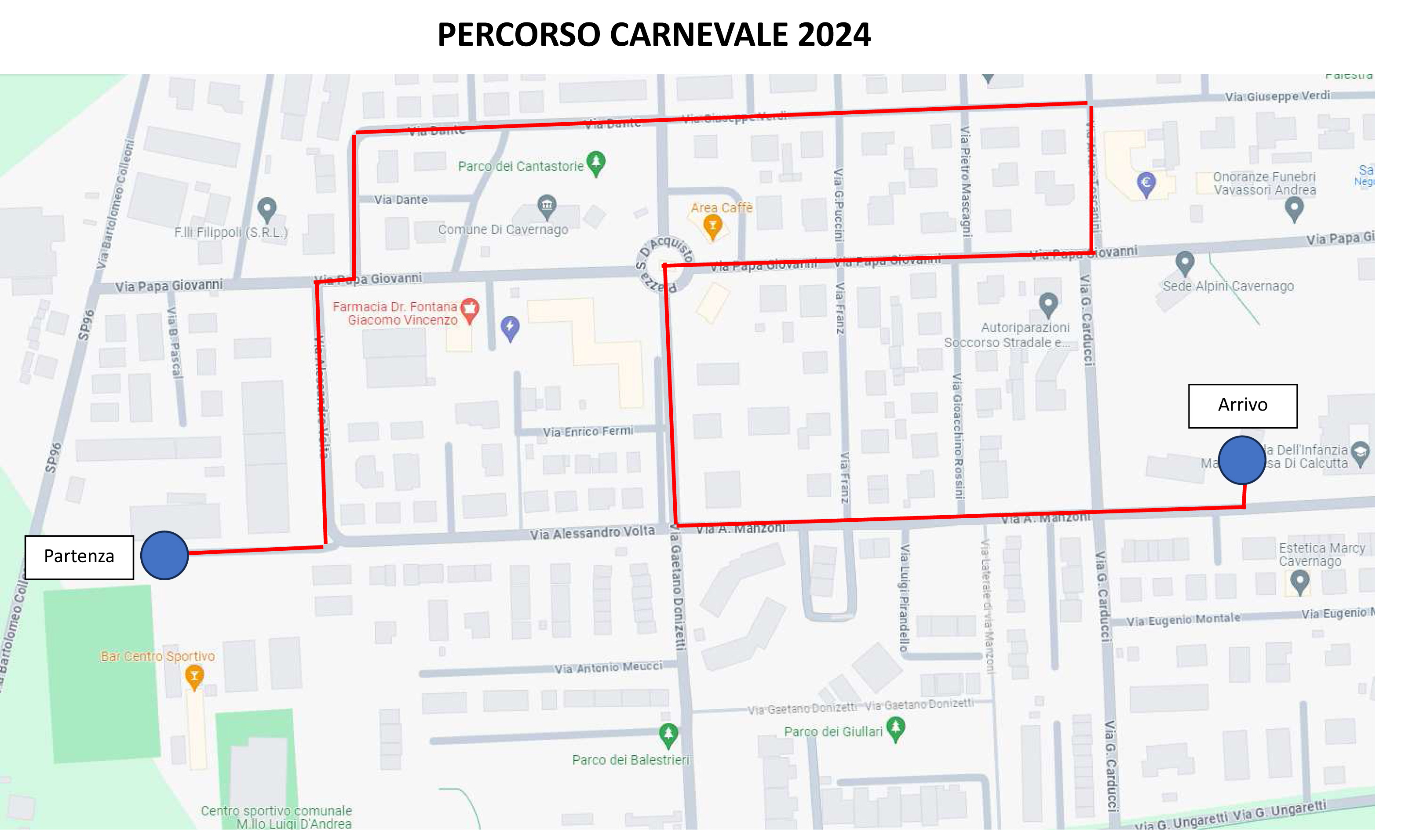 Partenza Centro sportivo in via Barborini e D'Andrea, arrivo presso l'oratorio S. Giovanni Bosco.