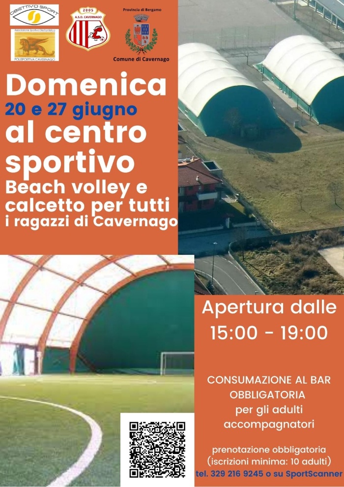 Domenica 20 e 27 giugno 2021, giornate speciali al centro sportivo, campi da calcetto e beach volley fruibili gratuitamente dalle 15:00 alle 19:00.