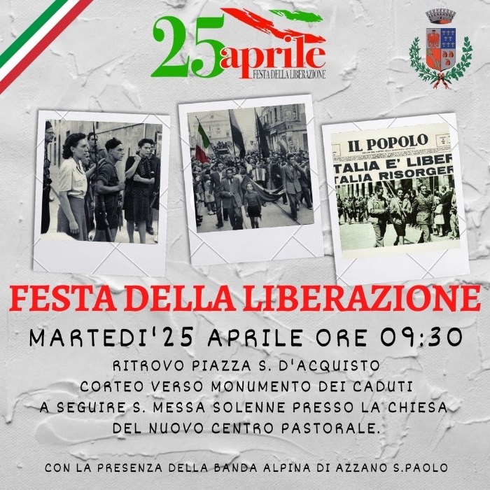 Il 25 aprile lo passiamo insieme, nel ricordare la LIBERAZIONE e il nostro patrono S. Marco. LA CITTADINANZA E' INVITATA A PARTECIPARE.