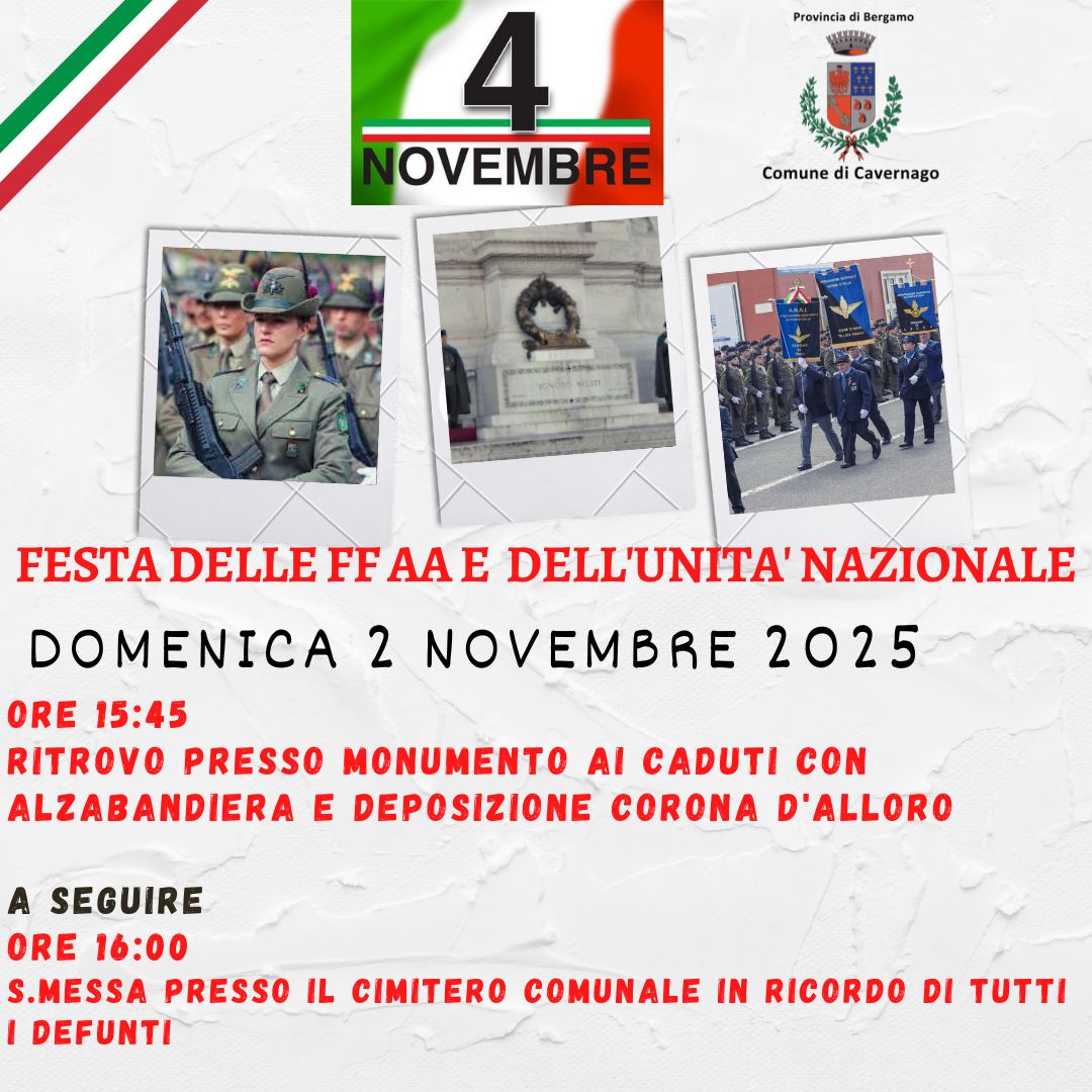 Il Comune di Cavernago celebra la Giornata nazionale delle Forze Armate e dell'Unità Nazionale.