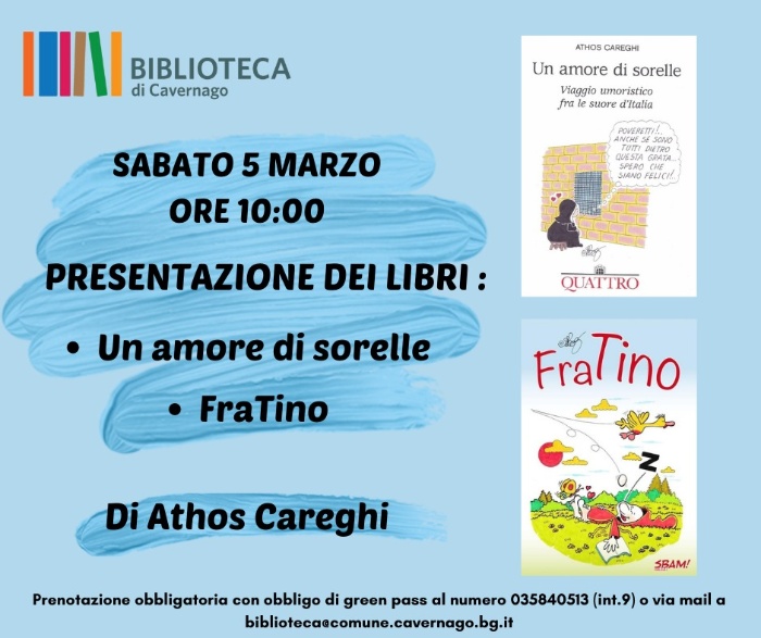 E' con grande piacere che la nostra biblioteca accoglie l'amico ATHOS CAREGHI, noto vignettista, il quale presenterà le sue ultime pubblicazioni: