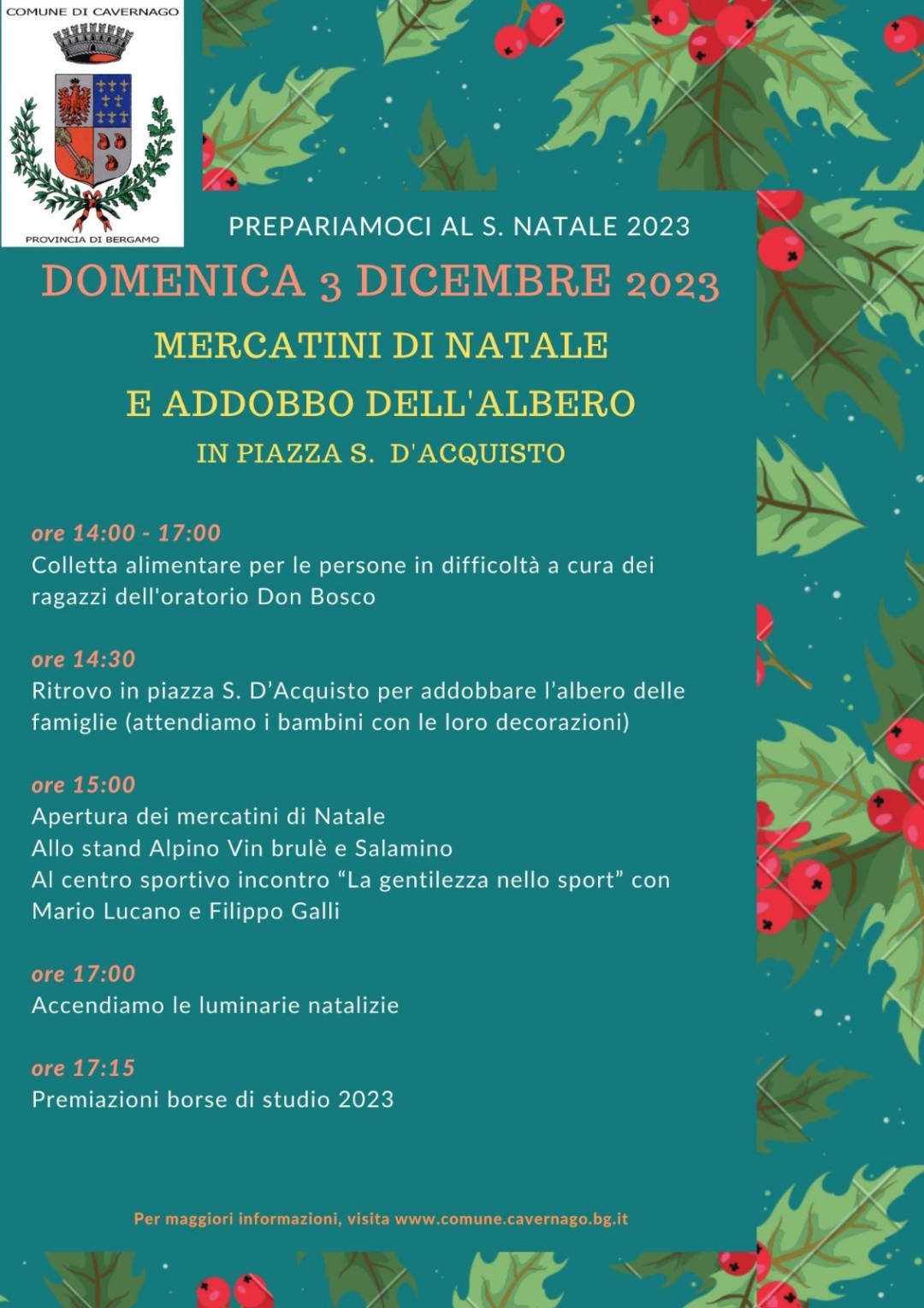 DOMENICA 3 DICEMBRE 2023, ci saranno i tradizionali mercatini di natale, accompagnata dalla colletta alimentare e dalla consegna delle borse di studio agli studenti più meritevoli.