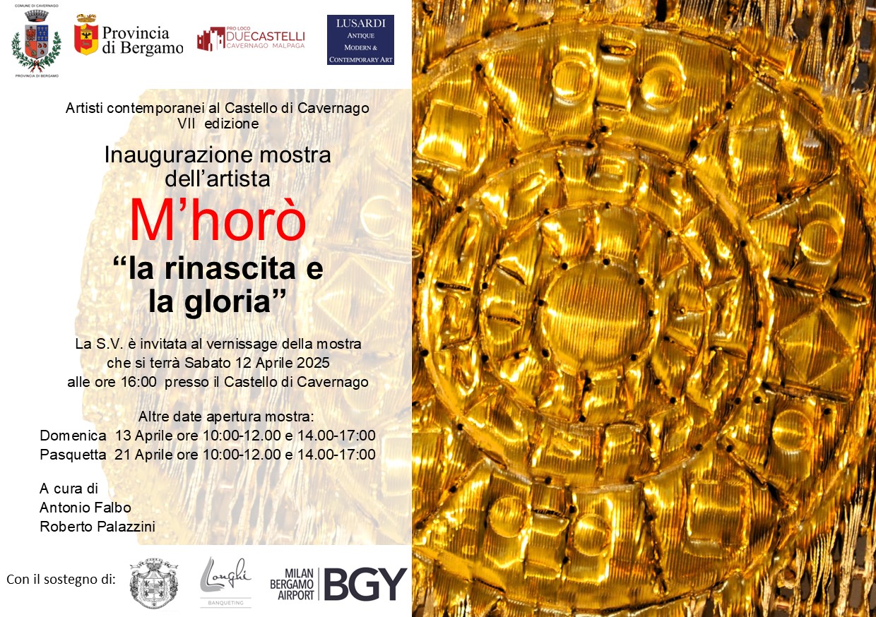Sabato 12 aprile alle ore 16:00, presso il castello di Cavernago, si terrà l’inaugurazione della mostra d’arte contemporanea “M’HORO’: La rinascita e la gloria”.