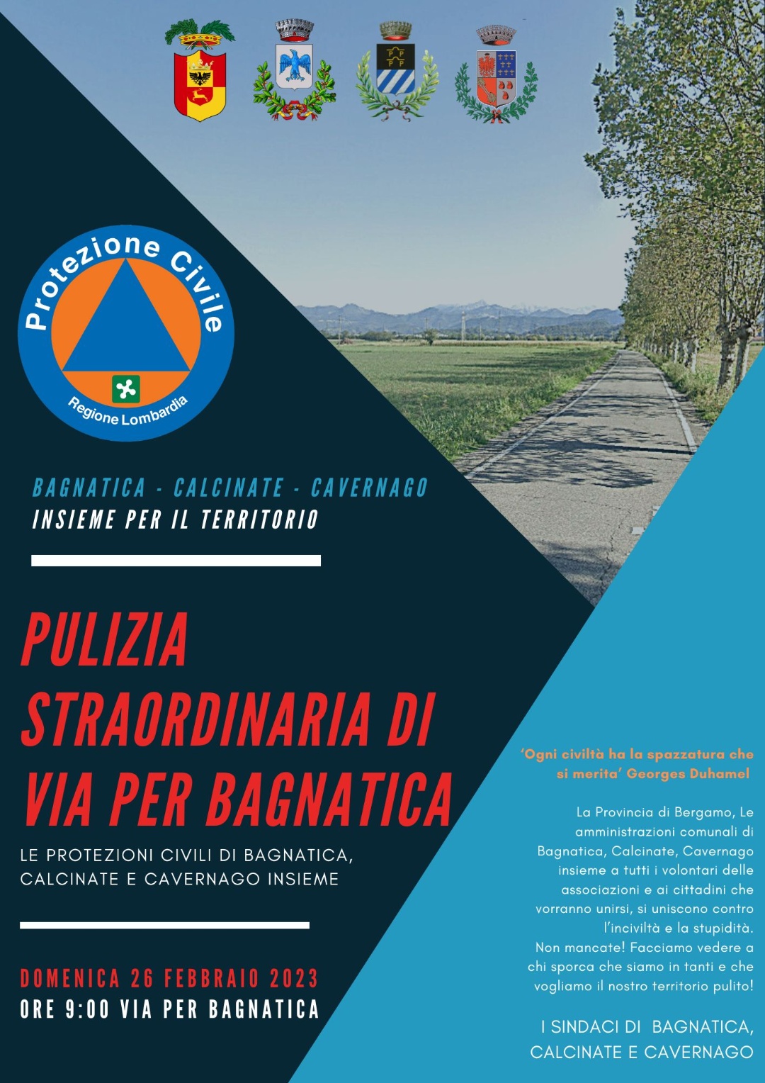 La Provincia di Bergamo, Le amministrazioni comunali di Bagnatica, Calcinate, Cavernago insieme a tutti i volontari delle associazioni e ai cittadini che vorranno unirsi, si uniscono contro l’inciviltà e la stupidità.