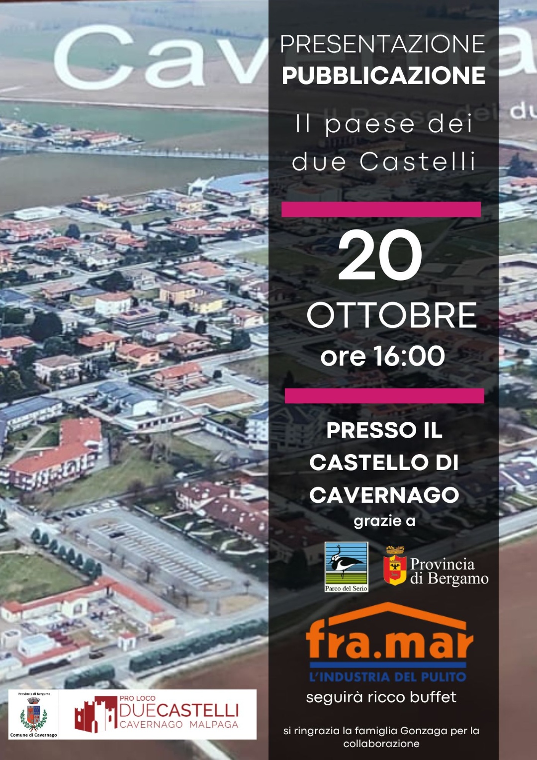 Non prendete impegni! Domenica 20 ottobre, al Castello di Cavernago, si terrà la presentazione del libro CAVERNAGO: Il paese dei due castelli, una pubblicazione edita dal Comune di Cavernago con la collaborazione della Pro Loco Due Castelli Cavernago e Malpaga.