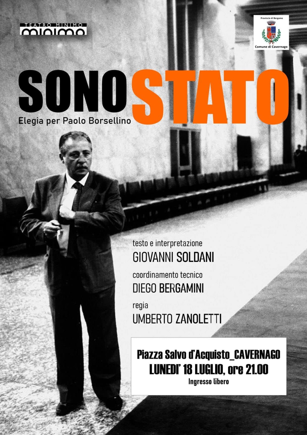 Cavernago ospita lo spettacolo dal titolo ‘sono Stato’ di Giovanni Soldani.